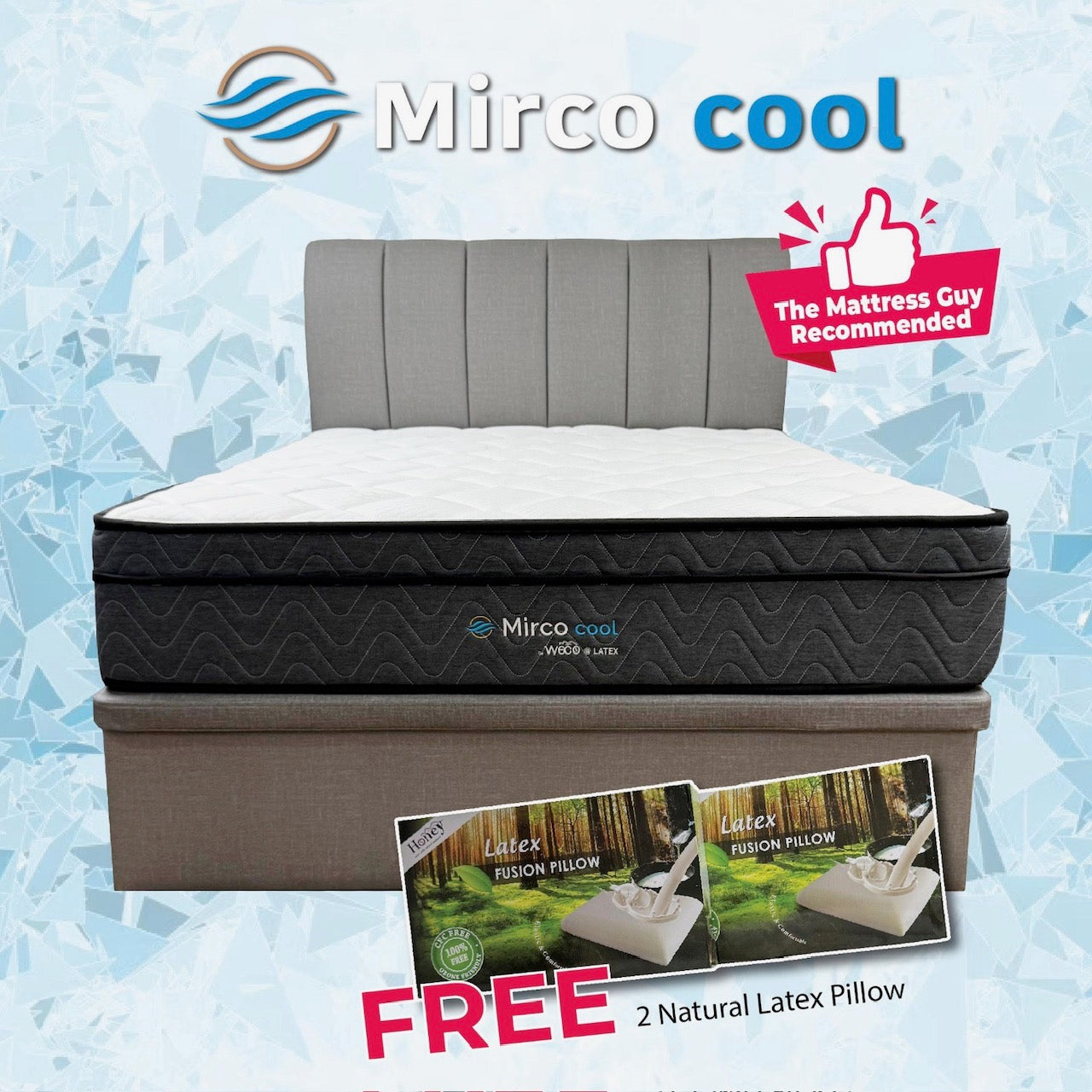 The Mirco Cool Mattress is made of natural latex, high resilient foam and high-density foam. It contains high density foam as the base and firm latex at the upper layer to provide comfort cushioning for pressure relieving. It is complemented with a cool silk cover for a softer, cooling sleeping surface. The Cool Silk fabric provides a luxuriously silky-smooth feeling. The mattress with innovative Cool Silk - Cool Jade Fiber absorbs the excess body heat providing the ultimate coolness.